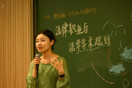 其次,简老师继续提出第二个法律的“刻板印象”——“法学生应该懂得所有法律”,但其实不然,简老师具体阐述了法学本科门类与专业分类,她指出,本科法学具有专业优势,同学们要树立信心,并准备好迎接法考等专业挑战。简老师打破了同学们对于法学的刻板印象,警示同学们法学这条路是需要高付出的,具有很强的不确定性,同时也肯定了自身未来选择权的增多,勉励同学们不断学习、提升能力。