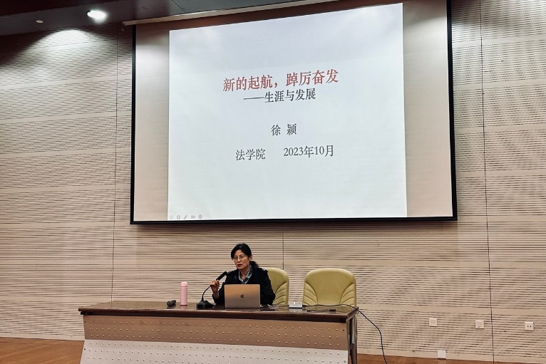 徐颖副书记以“新的起航,踔厉奋发——生涯与发展”为主题,向2023级研究生新生们讲授了习近平总书记“青年观”与“学生成长成才的就业观”两部分内容。