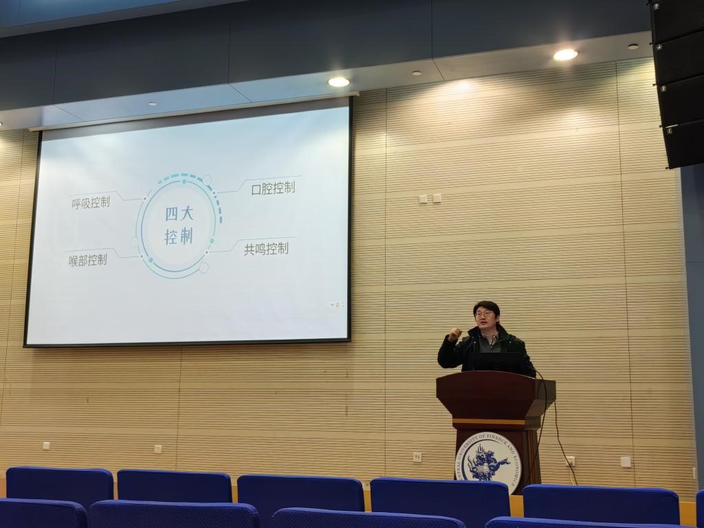 讲座伊始,刘震老师指出,法学专业对论辩和表达能力有较高的要求,学会正确发声,掌握和控制演讲语调、节奏和气息对法学专业同学的职业发展尤其重要。刘震老师强调,声音不是音色单方面决定的结果,而是自身音色和后天技巧共同作用的结果,要塑造好的声音,音色和技巧缺一不可。先天自身音色不好也无需气馁,后天的训练虽不能使声音“改头换面”,但可以在自身音色的基础上取得较好的改进效果。