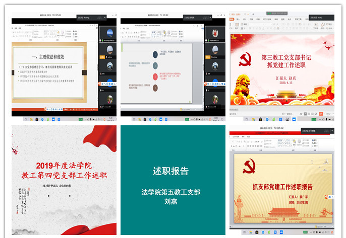 2020年4月15日下午,学院党委召开了2019年度教工党支部书记抓党建工作述职考评会。由于疫情原因,本次述职考评会采用了线上视频会议的形式。院党委书记吴韬,党委委员、院长尹飞,党委副书记、纪委书记徐颖,党委委员、副院长李伟,党委委员王克玉、赵真以及各教工党支部书记参加了会议。述职考评会由党委组织员邓玉主持。