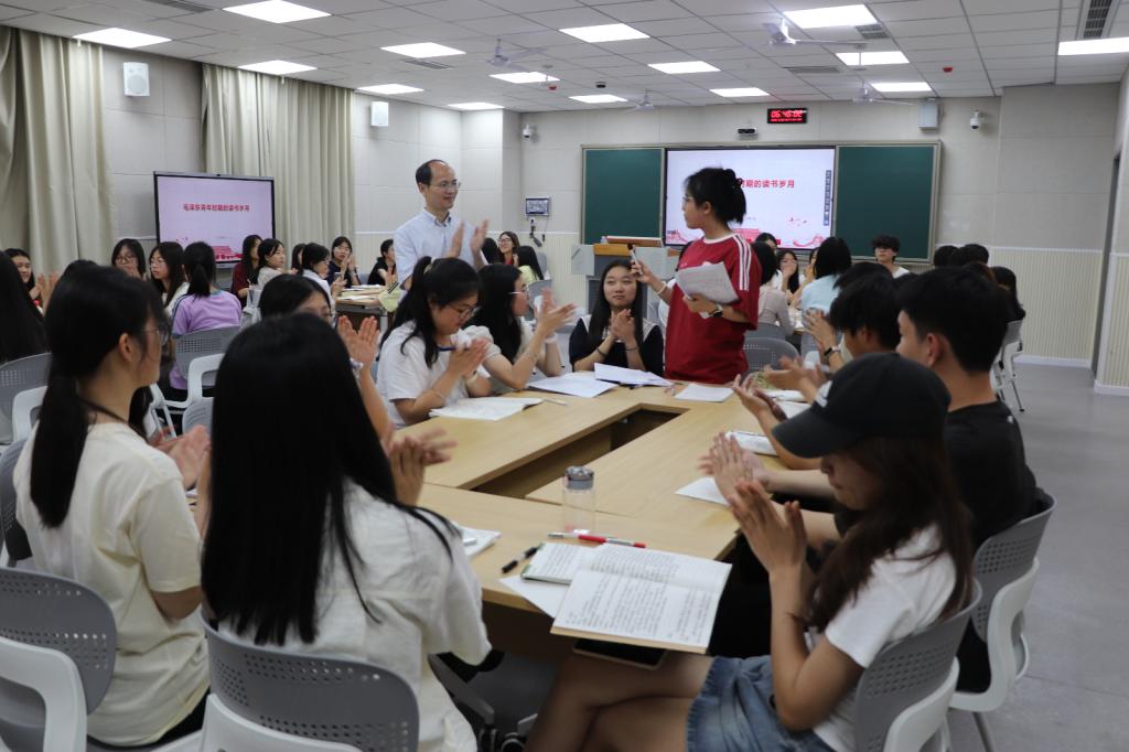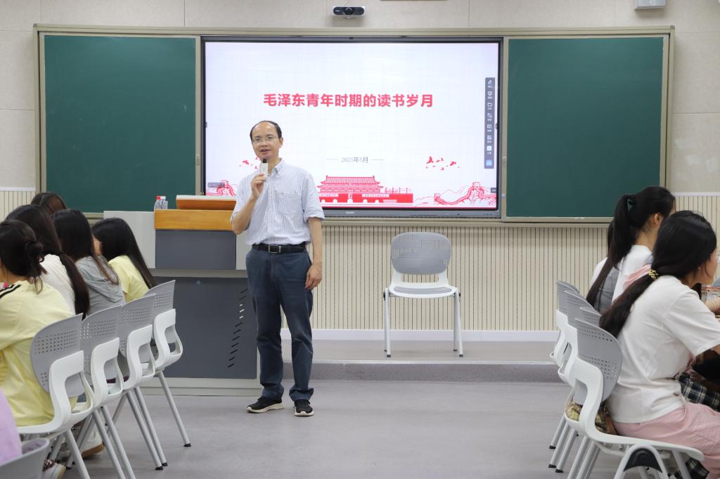 课程中,黄涛书记从求学经历、读书体验、方法探究和当代启示四个方面系统讲述了毛泽东青年时期的读书历程及其现实意义。并组织学生进行小组讨论发言。各小组从毛主席的读书岁月、书籍分类、读书方法及对当代青年的启示等方面进行讨论。认为读书是知识积累与思想醒的过程,应广泛涉猎并深入钻研,不要“死读书”也不能“读死书”。