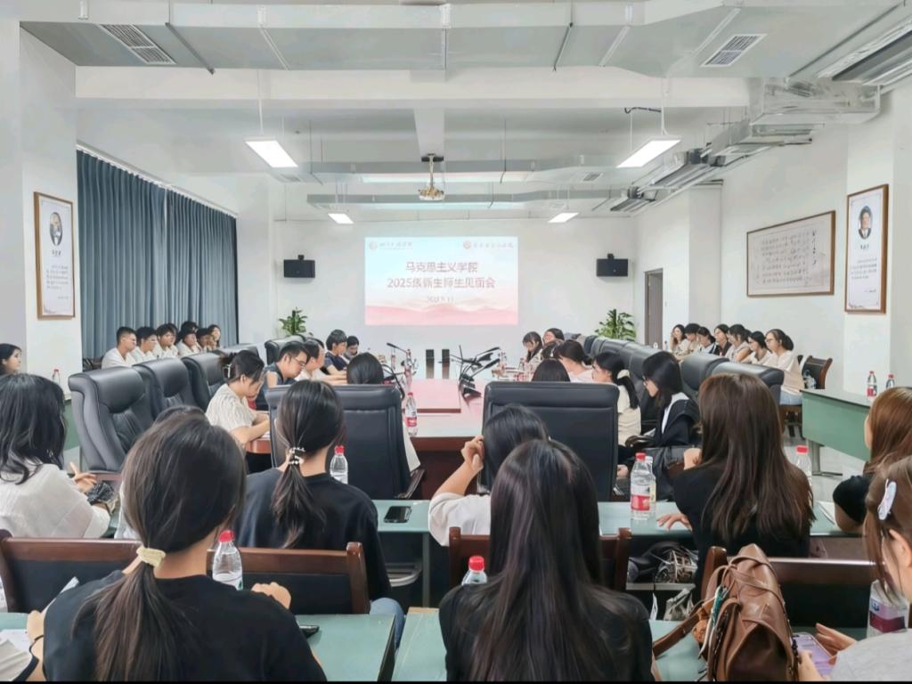 2025年9月11日下午15:00,伟德国际官网2025级新生师生见面会于东区C108会议室举行。学院院长孙杰、正处级组织员丁竹、党委副书记周春滟、副院长何先成、思想政治教育教研室主任曹红梅等领导及老师出席,2025级全体新生参会,会议由周春滟主持。本次见面会旨在搭建师生沟通桥梁,帮助新生快速适应大学生活、了解学院情况。