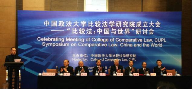 2009年12月5日,中国政法大学比较法学研究院成立大会暨“比较法:中国与世界”研讨会在京隆重举行。全国政协副主席罗豪才教授,中国政法大学终身教授江平教授、陈光中教授、张晋藩教授、李德顺教授,以及台湾大学王泽鉴教授,前比较法研究所所长潘汉典教授、董璠舆教授和廉希圣教授、中国政法大学校党委书记石亚军教授,校长黄进教授等出席了会议。