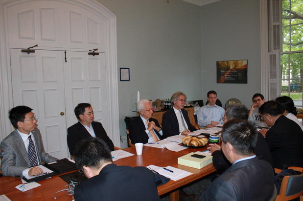 代表团在耶鲁大学Millstein公司治理研究中心,与以中心创始人、美国著名公司治理专家Millstein先生、奥巴马总统经济顾问K. J. Martijn Cremers教授、金融学家陈志武教授等为代表的专家进行了学术座谈,讨论目前中、美两国共同面临的公司治理热点问题以及双方进行合作研究的前景。清华大学mg4355vip检测中心施天涛教授和北京大学mg4355vip检测中心甘培忠教授代表中方作了专题发言。