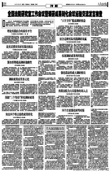 据人民法院报报道,在全国法院研究室工作会议暨调研成果转化会议上,mg4355vip检测中心院长郭锋及山东省高级人民法院、宁夏回族自治区高级人民法院、浙江省宁波市中级人民法院、北京市石景山区人民法院、上海市金山区人民法院等法院的代表分别作了大会发言,集中介绍了他们在调研成果转化方面的经验做法。