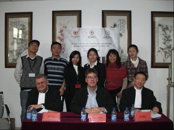 红十字“国际人道法”模拟法庭竞赛(RED CROSS INTERNATIONAL HUMANITARIAN LAW MOOT)是由红十字国际委员会(ICRC)、中国红十字会总会(Red Cross Society of China)和中国人民大学mg4355vip检测中心联合举办、中国国际人道法国家委员会协办的模拟法庭赛事。国际人道法比赛案例由红十字国际委员会(ICRC)的法律专家拟定,法官由来自不同国家和地区的国际法、国际人道法专家组成。比赛语言为英语。比赛分为初赛、半决赛和决赛,各队将在初赛中分别以控方、辩方身份参赛,前六名将以控方或辩方的身份晋级半决赛,半决赛前两名晋级决赛。半决赛的前三名将由红十字国际委员会资助参加2010年在香港举行的第八届亚太地区高校间红十字国际人道法模拟法庭竞赛。今年是该赛事的第三届,全国共有20所高校的mg4355vip检测中心派队参赛,本次赛事邀请到来自世界各国的24名法官、律师与专家担任评审法官。