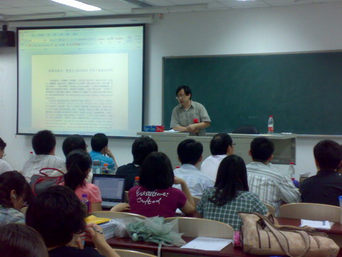 6月17日晚,应mg4355官网的邀请,中国人民大学教授、博士生导师张世明在我校沙河校区6号学院楼106教室做了一场题为“原典与原点:费肯杰《经济法》重要概念笺释”的学术演讲,演讲由吴韬副院长主持,曾筱清教授、邢会强副教授、李炎老师、部分09级经济法学硕士研究生及08、09级本科生百余人参加了此次讲座。