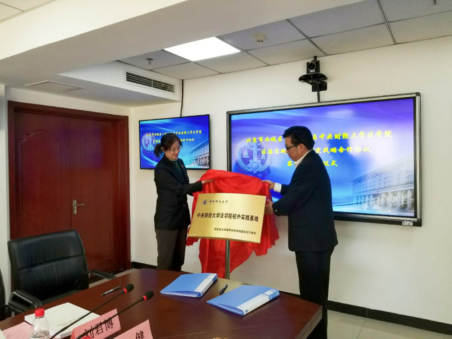 随后,mg4355vip检测中心副院长李伟副教授和西城区人民法院副院长王元田共同签署了《法治实践教学与研究战略合作协议》,院党委副书记徐颖研究员与王元田副院长为校外实践基地揭牌。