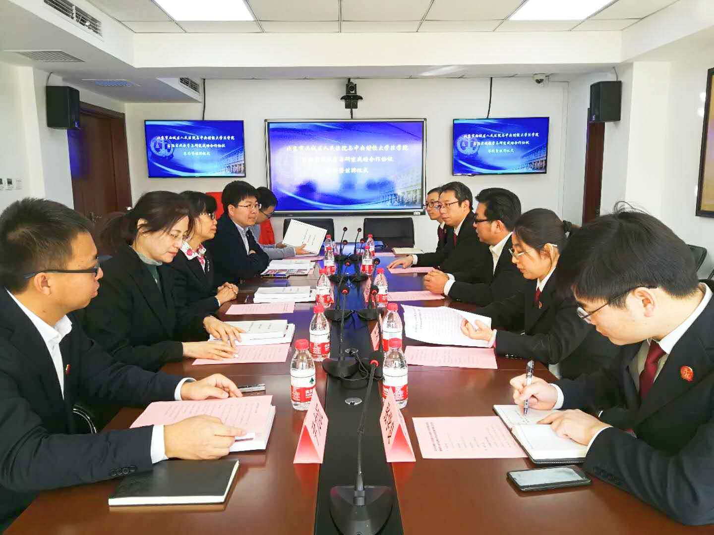 签约仪式上,西城区人民法院党组成员、副院长王元田致欢迎辞,并对西城区人民法院和金融街派出法庭的整体情况进行了介绍。金融街法庭成立于2017年9月26日,是集辖区内涉金融、民商事案件审理和执行工作于一体的,以“大金融审判”为框架,以专业化审判改革为抓手的试点派出法庭。双方的合作在加强司法资源与学术资源有机融合的同时,也将使在校大学生通过实践的历练,对法律职业共同体具有更深刻的体会。