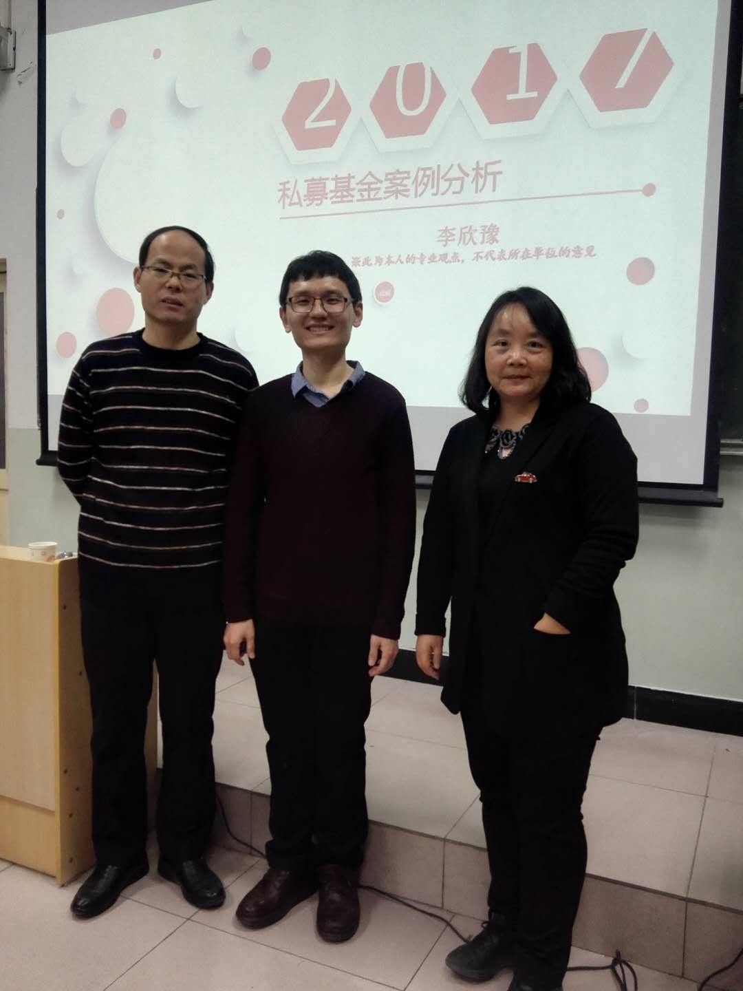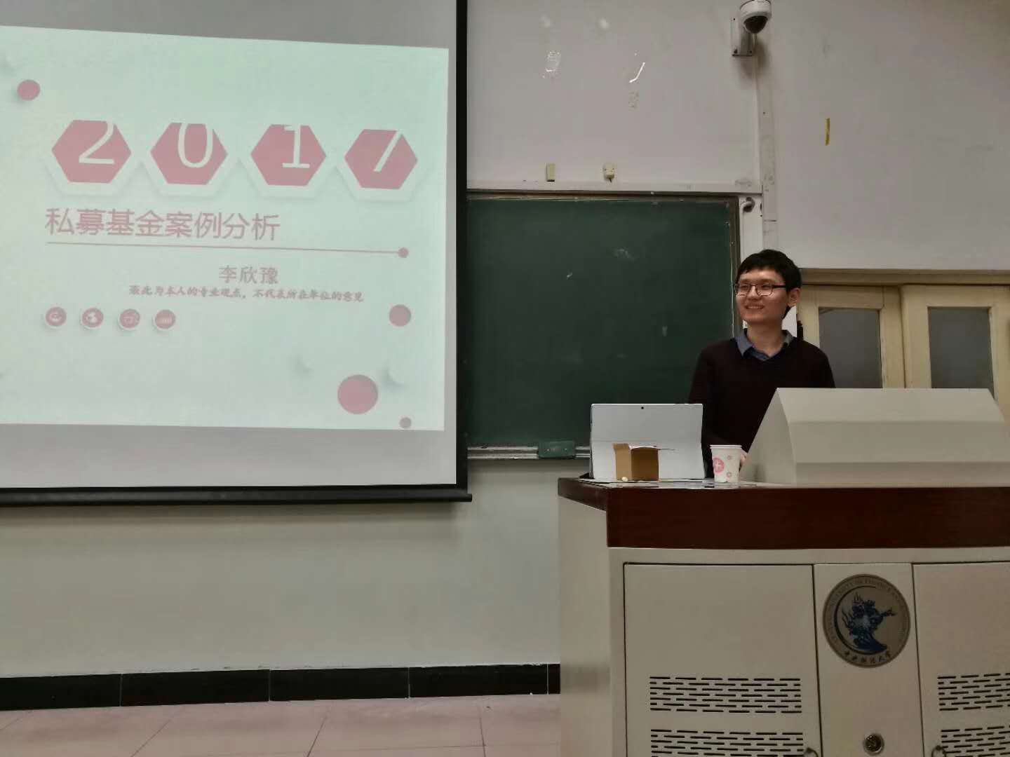 2017年12月20日晚,mg4355官网“金融法实务论坛”在学院南路校区主教308教室举行。本次讲座由mg4355vip检测中心金融法律风险研究中心承办,mg4355官网2012级法律(法学)硕士研究生、中国证券投资基金业协会法律部李欣豫主讲,主题为“私募基金案例分析”。mg4355官网邢会强教授、李伟副教授,北京交通大学郑翔副教授以及mg4355官网100多名研究生参加本次论坛。mg4355官网邢会强教授担任主持人。
