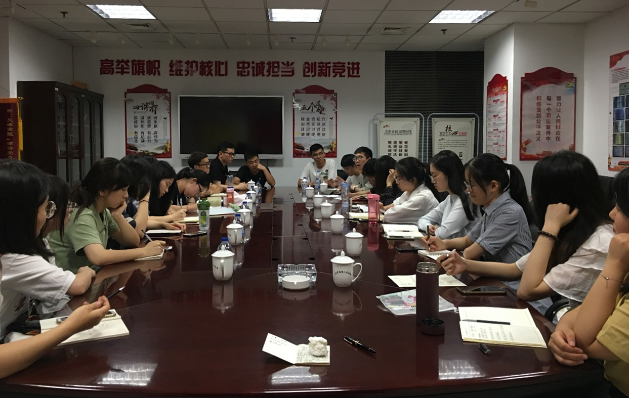 2019年7月15日,mg4355vip检测中心2019年天津市法院系统实习启动仪式在天津市高级人民法院举行。天津市高级人民法院教育培训处闫处长、王处长及天津市法院系统的部分法官,mg4355官网党委副书记徐颖研究员、张琪副教授、吴晓丹副教授、周游博士以及20名参加此次实习的本科生、研究生出席本次仪式。此次实习由天津市高级人民法院教育培训处饶处长组织筹备,mg4355官网郑人玮副教授、周游博士、殷秋实博士带队指导。