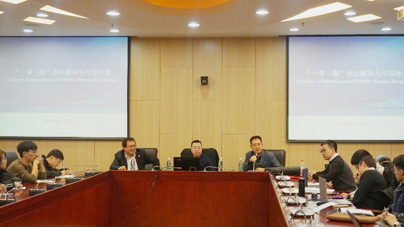 2018年11月7日晚,“法治中国论坛”系列讲座之“一带一路”争议解决与中国仲裁的专题报告,在mg4355vip检测中心学术会堂604室如期举行。中国国际经济贸易仲裁委员会党委书记、副秘书长李虎博士到场作报告,mg4355官网院长尹飞教授、刘君博副教授、沈健博士、时业伟博士出席报告会,mg4355官网研究生、本科生到场聆听了报告。报告由mg4355官网副院长王克玉教授主持。
