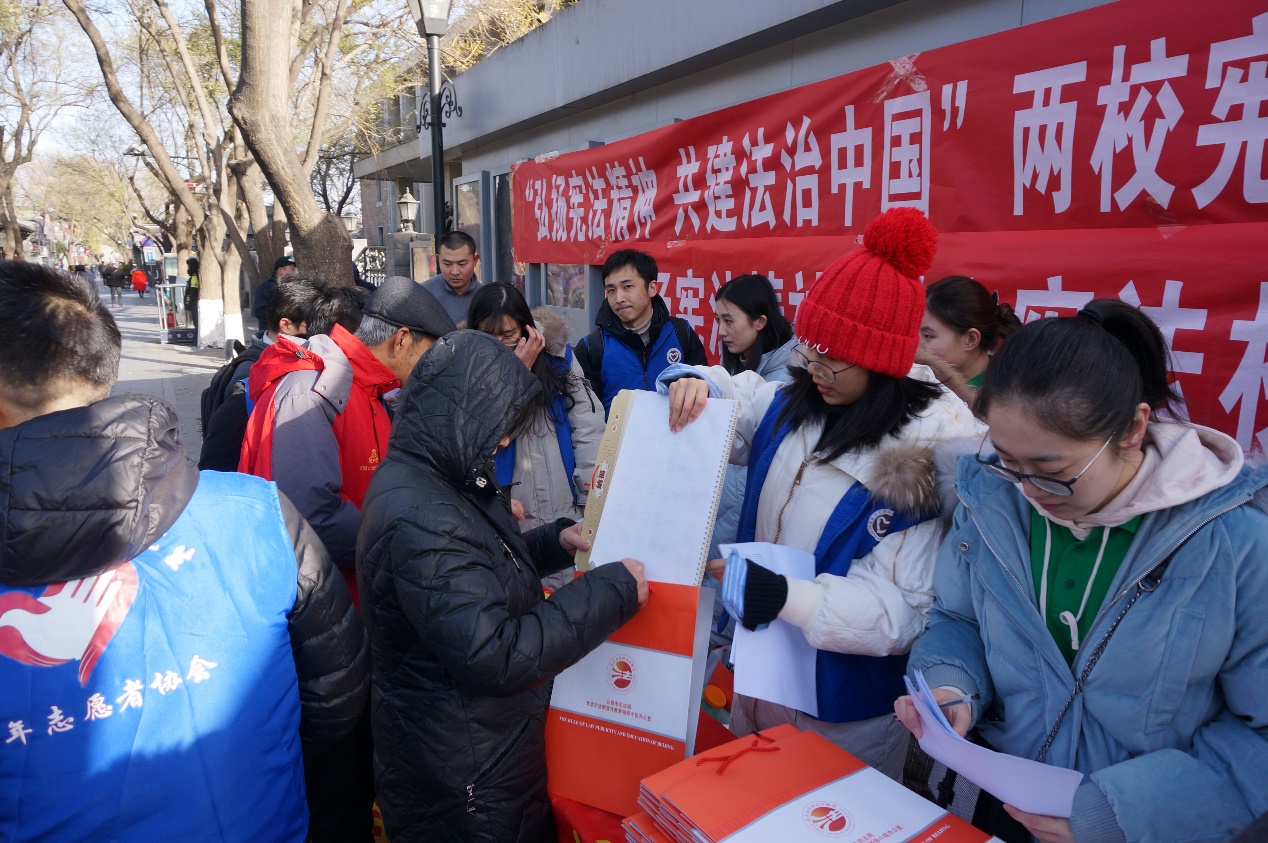 2018年12月4日是我国第5个国家宪法日,也是我国现行宪法的实施36周年。为了进一步弘扬宪法精神,在全社会营造尊崇宪法、信仰法治的良好氛围,贯彻落实党的十九大精神,我校法律援助协会联合中国政法大学青年志愿者协会于12月4日上午在北京市东城区南锣鼓巷主街开展南锣古巷社区主办的“弘扬宪法精神,共建法治中国”12·4国家宪法日主题宣传活动。