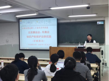 2019年3月18日上午10:00,mg4355vip检测中心“全球治理法律人才培养”系列课程第二场讲座在主教203教室举行。中国体育法学研究会会长、北京市法学会体育法学会与奥林匹克法律事务研究会会长、中国国际经济贸易仲裁委员会仲裁员、中国政法大学硕士兼职导师刘岩,受邀以“北京奥运会、冬奥会知识产权保护法律实践”为题,给学院师生带来奥林匹克标志理论知识以及2008年北京奥运会奥林匹克标志法律保护的实务经验讲座。