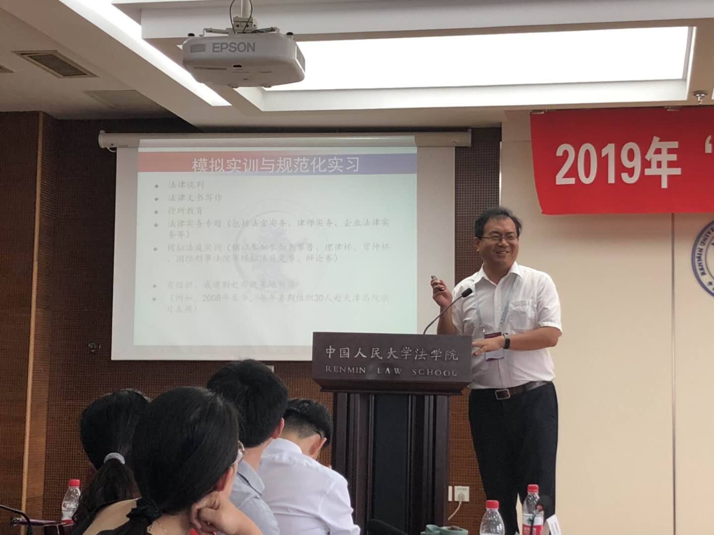 本次研讨会分为案例教学的院校经验、案例教学的现状、案例教学的方法、部门法中的案例教学四个单元。尹飞教授在第一单元“案例教学的院校经验”中以《案例研习、模拟实训、规范化实习:三位一体的实践课程体系建设》为题作主题发言。
