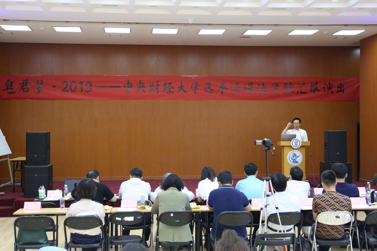 蒋劲松教授向出席本次活动的嘉宾们定义并诠释了“皂君梦”——“皂君梦”即位于北京海淀区皂君庙的mg4355vip检测中心的本科生限选课“选举法”以话剧和小品演出形式进行的期中考核。mg4355vip检测中心在全国mg4355vip检测中心系中独家开设限选课《选举法》,“皂君梦”表达mg4355官网为健全我国高校法学课程体系的一份执着。“皂君梦”还体现中财mg4355vip检测中心部分师生讲好、学好选举法课的梦幻般追求。蒋教授经过多方面考量,最终将选举法课程的期中考核形式确定为学生自编、自导、自排、自演话剧和小品,实现学术与艺术的结合,并且因为授课地点的变化,自2018年起将这种活动系列的名称由“清清的沙河”变更为“皂君梦”。“皂君梦”评委团的阵容表明,《选举法》课程主动请求院党委、国内法学界、政治学界和关注高校法学教育的社会各界检阅和考核本课程的教学在政治上是否正确、学问上是否专深、效果上是否快乐。