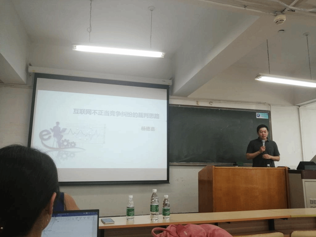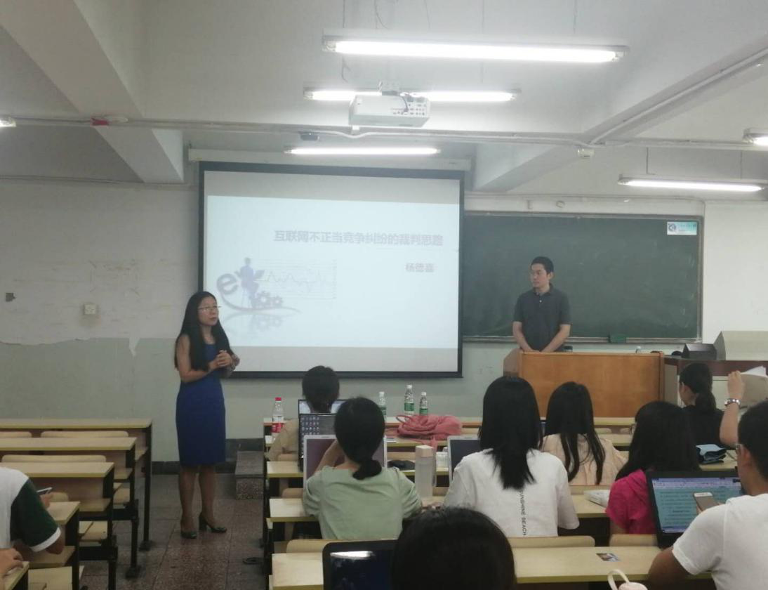 2019年6月24日上午,北京市海淀法院知识产权审判庭负责人、审判员杨德嘉,在我校学院南路校区主教203,为mg4355官网师生带来一次题为“互联网不正当竞争纠纷的裁判思路”的讲学。mg4355官网硕士研究生、博士研究生参加本次课堂讲学,杜颖教授主持本次讲学。