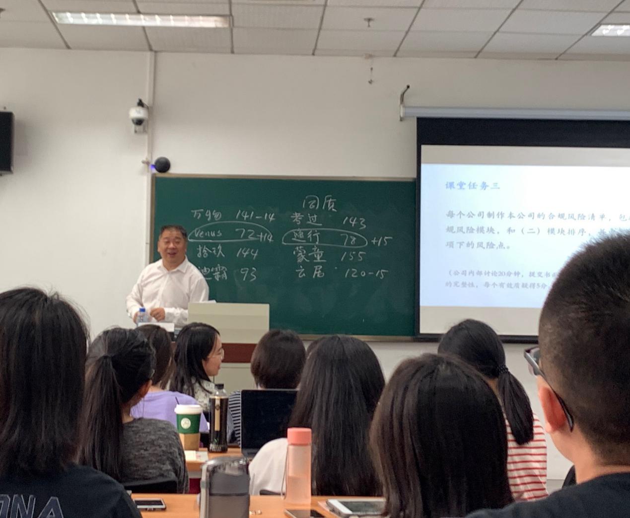 企业合规实务课程由企业合规研究和教育专家、戴姆勒奔驰大中华区前副总裁胡国辉先生讲授。在正式授课之前,胡国辉老师建议同学们进行分组,设立公司并设计主营产品,为同学们设定了一个公司竞争的背景,激发同学们的学习兴趣,促使同学们以团队协作的方式进行课前的预习。