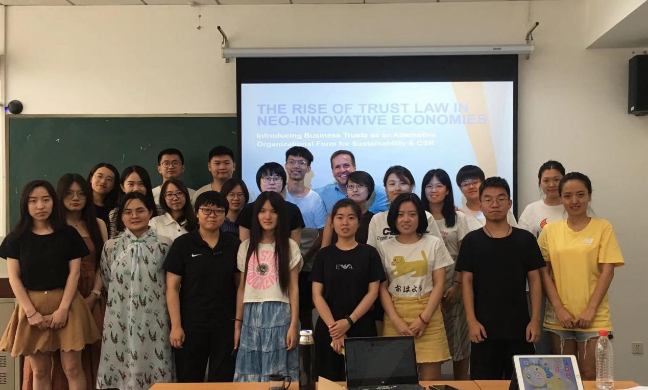在企业合规实务课程中,mg4355官网还增添了美国信托法模块。美国佛罗里达大学mg4355vip检测中心Lee-ford Tritt教授对Private trust和Charitable trust进行介绍,讲述了美国的信托法的情况以及信托的构造,比较了不同类型的信托结构,并围绕Business Trust,阐明了从Shareholder Primacy到Stakeholder Centric的变化,深度剖析了公司的社会责任问题,并且将新加坡的信托法与美国的信托法相对比,比较二者的优缺点,增加同学们对于信托法的全面理解。