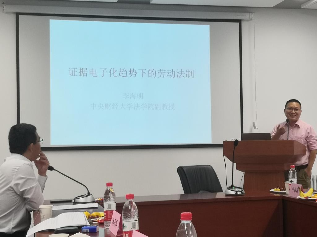 李海明副教授围绕“证据电子化趋势下的劳动法制”这一话题分析了电子化时代的服务业发展与劳动经济变化,基于此,分析了依据倾斜保护规则通过形式化的劳动合同实现和谐劳动关系的问题,提出应秉承有利劳动者的原则解释劳动法上的惩罚性规则,强调劳动监察的发达与劳动法公法化是电子时代的必然趋势。