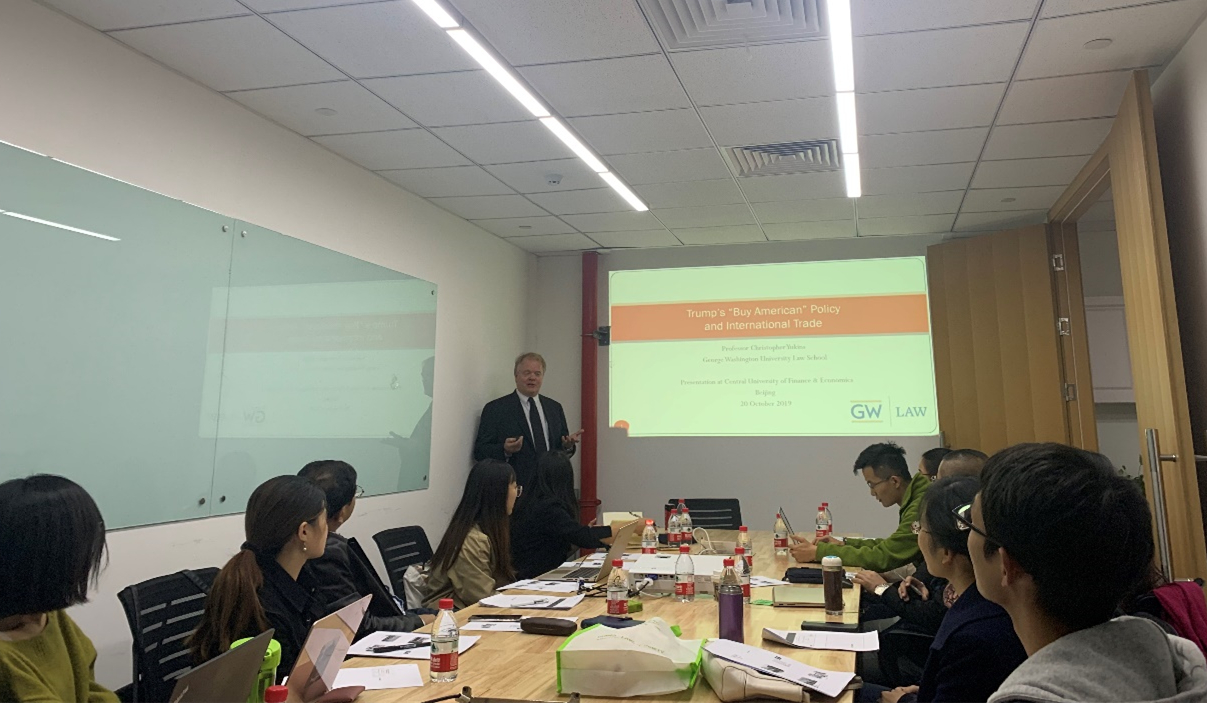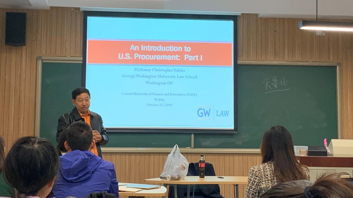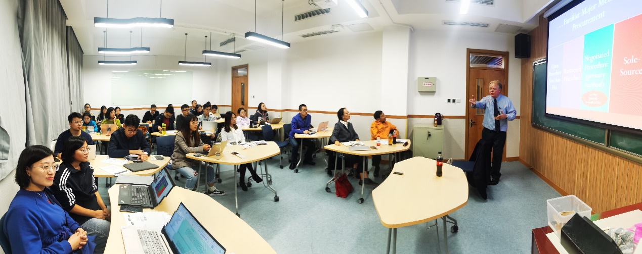 2019年10月20日至23日,应mg4355vip检测中心邀请,美国知名公共采购法研究学者、乔治华盛顿大学mg4355vip检测中心的Yukins教授(Christopher R. Yukins)来我校进行访问,并以特朗普政府的采购国货政策与国际贸易法治、政府利用商业网上商城的采购法律、绩效导向的美国政府采购法改革等问题为主题开展短期课程集中教学活动。来自mg4355vip检测中心、清华大学、中国政法大学的有关教授、访问学者以及来自mg4355官网和财税学院的博士后、博士研究生、硕士研究生和本科生以及兄弟院校的师生六十多人先后参加了该课程并进行了研讨。课程与研讨由mg4355vip检测中心曹富国教授主持。