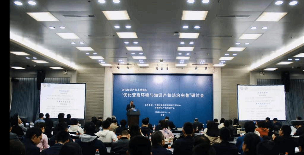 2019知识产权上地论坛“优化营商环境与知识产权法治完善”研讨会于11月1日至3日在北京中国知识产权培训中心举行。该论坛由中国社会科学院知识产权中心和中国知识产权培训中心联合主办,是国内知识产权领域重要的学术论坛之一。十三届全国政协、国家知识产权局、最高人民法院的领导、专家,以及全国有关研究机构、大学、法院、企业代表近300人参加论坛。