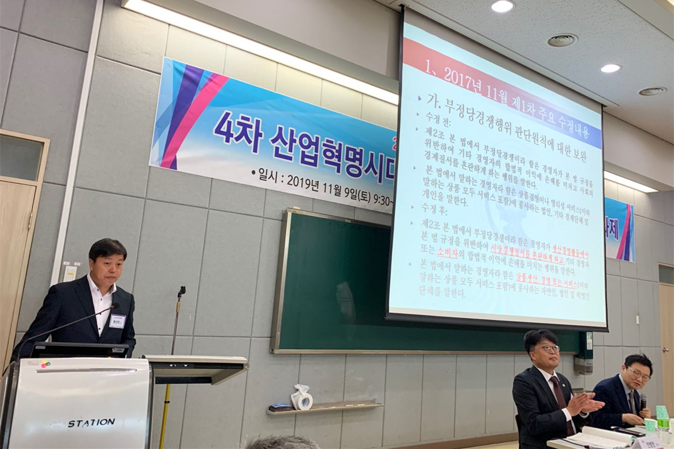 董新义副教授则用韩语发表了《中国反不正当竞争法最近修改内容及典型案例》。他介绍了中国《反不正当竞争法》在2017年和2019年的两次修改情况,对《反不正当竞争法》修改的条文进行了详细介绍,例如第二条修改了不正当竞争行为的定义,明确了判断规则;修改完善了七种不正当竞争行为的认定规则,包括关于混淆行为的认定规则、关于商业贿赂的认定规则、关于虚假宣传行为的认定规则、关于有奖销售行为的认定规则、关于商业诋毁行为的认定规则、关于商业秘密保护的相关规定、新增了关于互联网不正当竞争行为的规定,还删除了五种限制竞争和垄断行为,以及加大了不正当竞争者的损害赔偿责任,强化了监督检查的手段和措施。特别是重点介绍了商业秘密保护方面的修改内容、修改背景,并用四个典型案例对未来我国反不正当竞争法治进行了展望。
