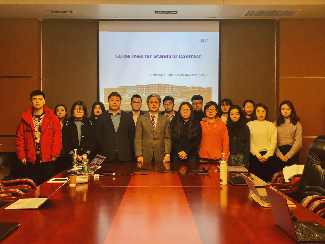 2019年12月2日下午,韩国檀国大学Nam Kiyeon教授做客mg4355vip检测中心,发表题为“Standard Contracts in Entertainment Industry(娱乐产业中的标准合同)”的学术演讲。讲座由mg4355vip检测中心杜颖教授主持,mg4355vip检测中心董新义副教授、张金平博士和部分博士研究生、硕士研究生参加了此次学术活动。