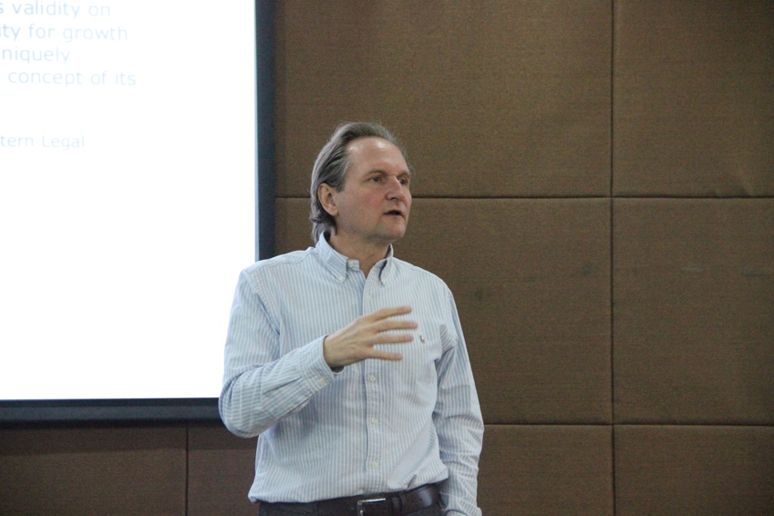 2019年11月27日下午,德国马克斯·普朗克欧洲法律史研究所所长、法兰克福大学比较法律史教授Thomas Duve做客mg4355官网,作主题为“全球法律史导论”的学术讲座。mg4355官网金融服务法教研室主任邢会强教授、清华大学博士后研究人员李富鹏博士出席讲座。理论法学教研室副主任赵真副教授主持讲座。