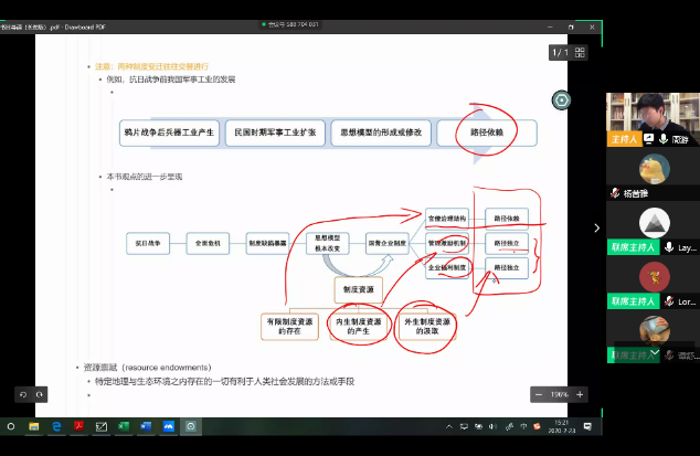 周游副教授首先介绍了线上工作坊流程、全新互动方式以及评价机制。随后进入书目导读环节,周游副教授简要说明了推荐《制度变迁的逻辑——中国现代国营企业制度之形成》为阅读书目的理由,阐释了本书的主旨及目录框架,介绍了本书有趣的留意点,重点探讨了如何理解在中国国企制度的形成,反思并分析了单位制度的起源、研究国企制度形成的意义、国企乃至所有企业的当代使命等问题。