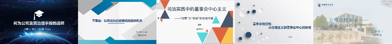 继而,在发言人展示环节中,mg4355官网2019级研究生程文以及2018级本科生黎泓玥、夏爽、王灿、张淳皓依次分享了各自的阅读体会与思考。程文同学首先对公司进行了界定,然后解释了两权分离的原因,最后分析了公司选择集权治理模式作为公司治理手段的必要性及合理性。黎泓玥同学主要探讨以下两大问题:一是通过“最大化股东财富”观念达成股东表决选举董事与董事会中心主义之间的联结;二是从“最大化股东财富”和“集体决策优势”两个角度阐释了为什么要选择董事“会”的形式。夏爽同学则以商事判断规则为切入点,阐释了司法实践中的董事会中心主义,具体介绍了商事判断规则的内容,并从董事会、股东和法院的视角解释了商事判断规则的正当性基础,最后列举了商事判断规则的不适用情形。王灿同学以董事会的独立性为中心,从董事会的演进入手,主要讲述推动董事会有所作为的五大压力,并对董事会独立性是否必要进行分析。张淳皓同学从金融危机入题,引出股东至上带来的公司治理问题,从投资者的惰性(主观)、股东积极主义的手段(客观)和改革的不现实性三个方面批判“股东会中心主义”的弊端,对比得出“董事会中心主义”将是公司治理未来的结论。