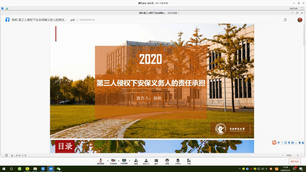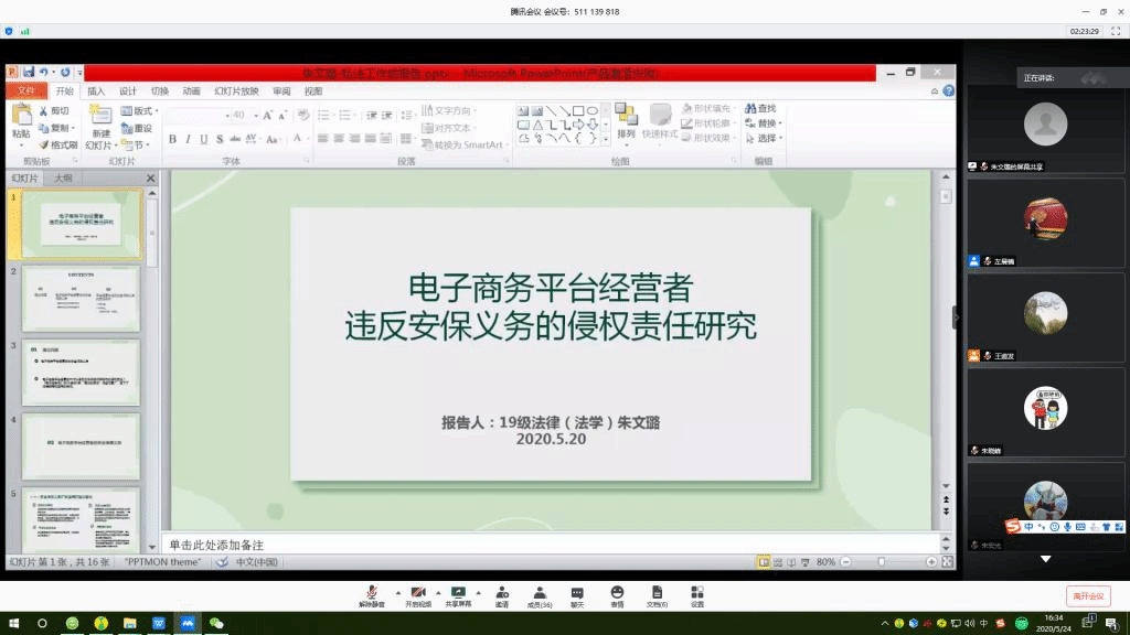 2020年5月24日下午,mg4355官网第20期私法工作坊以在线会议的方式如期举行。活动由mg4355官网王道发博士主持,朱晓峰副教授、王叶刚副教授、武腾副教授和徐建刚博士作为指导老师参与了本次活动。工作坊活动主要由指导老师引导、发言人展示、其他成员评议、自由讨论以及指导老师总结等环节构成。本次活动共有30余名师生参与报告与讨论。