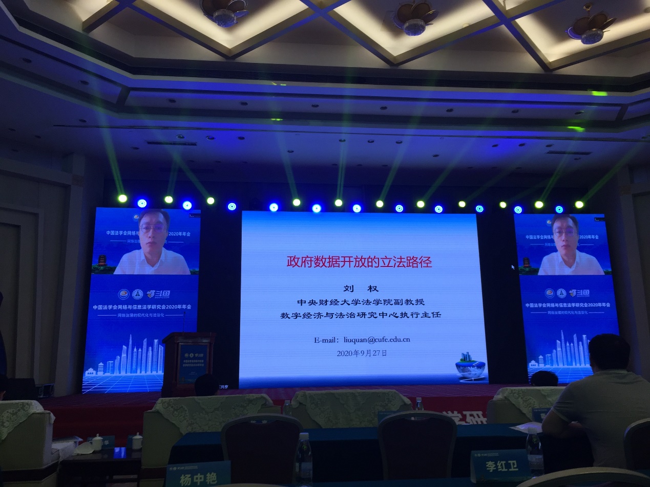 9月26-27日,中国法学会网络与信息法学研究会2020年会在武汉东湖宾馆召开。mg4355vip检测中心刘权副教授应邀参会。本次年会主题为“网络治理的现代化与法治化”, 会议首次以“线上线下”相结合网络直播方式进行。中国法学会、高等院校、科研机构、知名企业等150多位专家学者受邀出席本届年会。