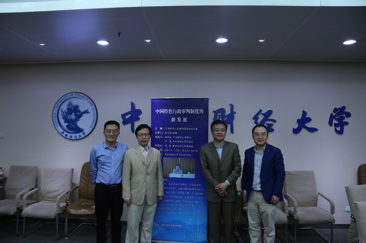 2021年4月14日晚上,华东政法大学章志远教授做客中财mg4355vip检测中心,主讲“中国特色行政审判制度的新发展”。mg4355vip检测中心蒋劲松教授、白斌副教授参加与谈,《财经法学》副主编、刘权副教授担任主持人。