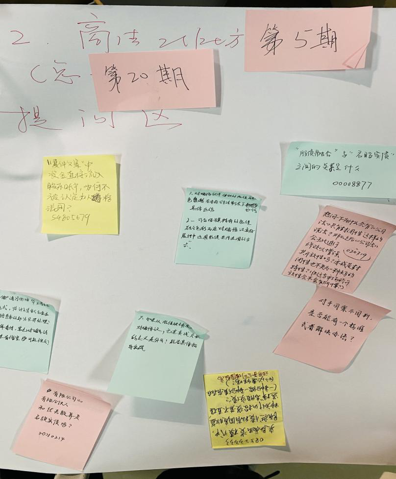 除评议团队进行评议之外,本期工作坊还特邀两位评议人,2017级本科生林晟与2019级研究生张芃芊分享了对本次议题的看法。林晟同学分享了关于股债融合议题,自己的本科毕业论文是以名股实债为切入点进行分析处理,并联系了会计上处理对名股实债进行剖析。林晟同学认为对于股债融合,不必过分关注股权、债权的关系问题,而应当审查当事人之间的协议安排,并尊重当事人之间的协议安排;张芃芊同学分享了自己的硕士毕业论文是从界分角度探讨投融资协议,并对其内部效力与外部效力进行了分析,通过类案研究后,张芃芊同学认为目前为止,现有的传统标准无法准确区分出股权特征。