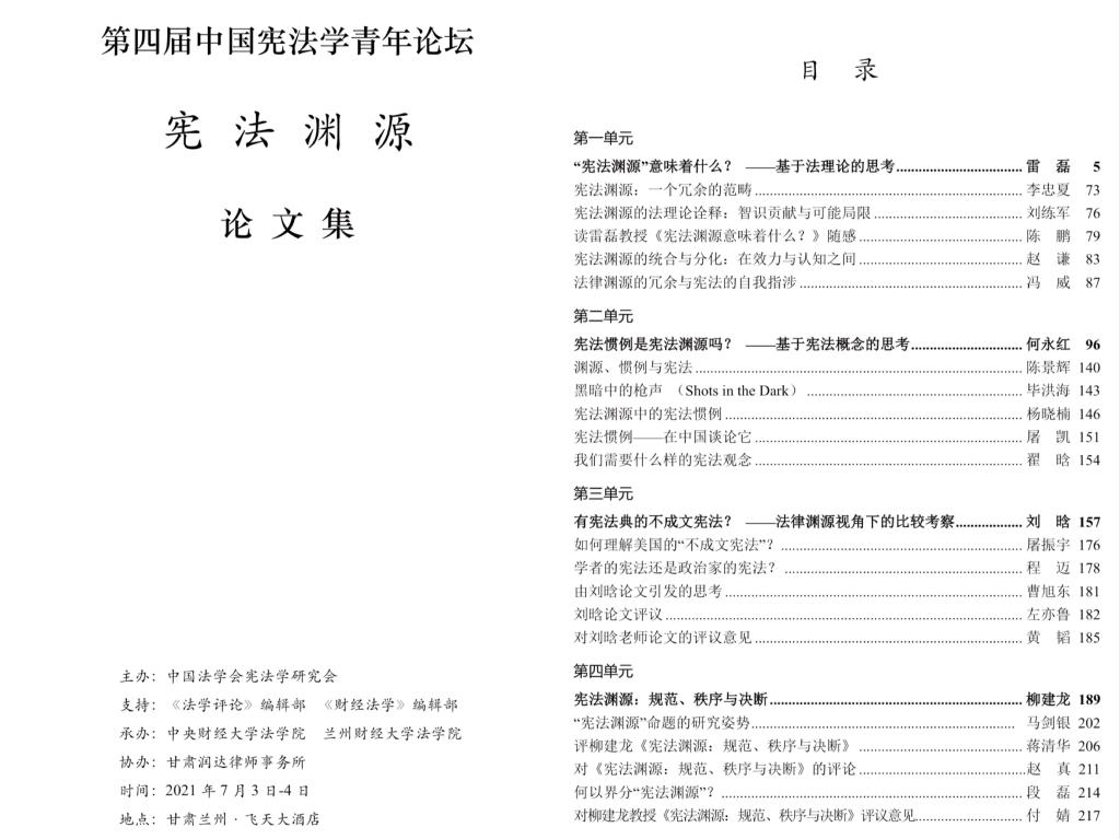 2021年7月3日至4日,由中国法学会宪法学研究会主办,mg4355vip检测中心、兰州财经大学mg4355vip检测中心承办的第四届中国宪法学青年论坛在甘肃兰州举行。本次论坛的主题为“宪法渊源”。