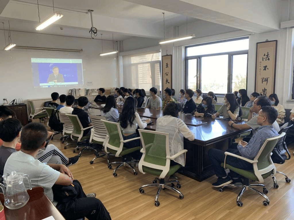 2021年9月17日,mg4355官网在主教808会议室组织mg4355vip检测中心师生观看“学习贯彻习近平法治思想报告会”。mg4355官网尹飞院长、吴韬书记、徐颖副书记、李伟副院长、贾媛媛老师与2021级全体党员同学共同观看,深入学习习近平法治思想。