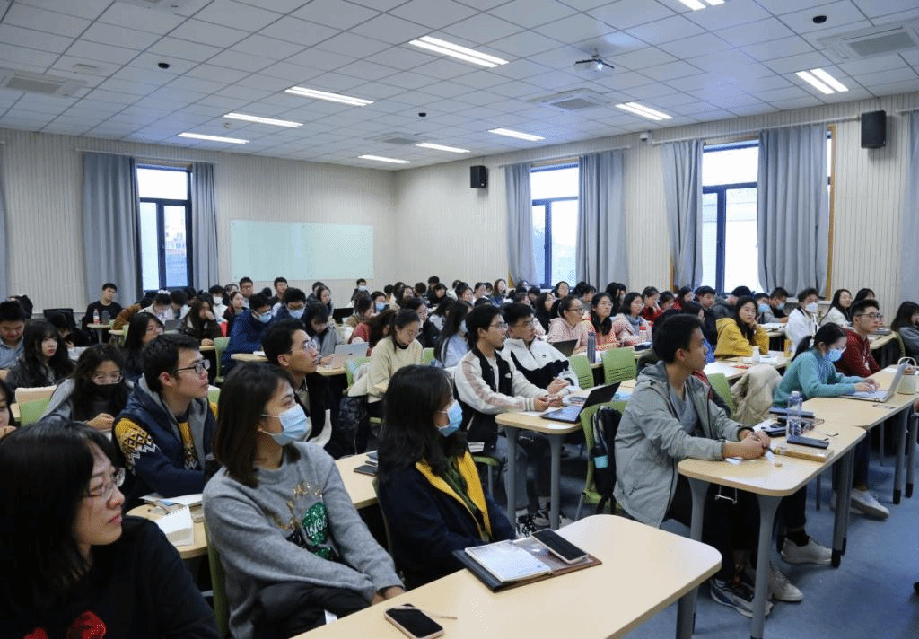 徐颖老师重点阐述了学业、就业与职业三者之间的关系。在学业方面,徐老师强调学生时代最主要的就是学业。她强调同学们应当严格要求自己,树立理想信念,德法兼修,精进自我,实现更高的价值追求。同时,徐颖老师介绍了mg4355官网“坚持政治引领、立足中国实践、聚焦数字时代、着力风险防控”的人才培养战略方案,并举例说明了同学们可能遇到的问题并提供了相关解决方案。在就业和职业方面,徐颖老师借助2016~2021年毕业生数据,分析了近年mg4355官网毕业生的升学就业情况,结合疫情发展的态势对同学们的未来提出了规划与建议,鼓励同学们多尝试不同领域的学习与实践,为日后的升学择业规划奠定良好的基础。