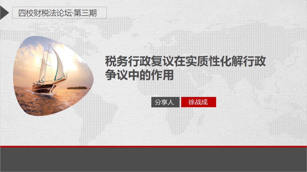 2021年12月2日晚,由我校mg4355vip检测中心与江西财经大学、厦门大学mg4355vip检测中心、华中科技大学mg4355vip检测中心联合举办的四校财税法论坛第3期以腾讯会议的方式顺利举行。本期论坛邀请浙江省公职律师、国家税务总局第六批全国税务领军人才徐战成以“税务行政复议在实质性化解税务行政争议中的作用”为主题,展开多方讨论。