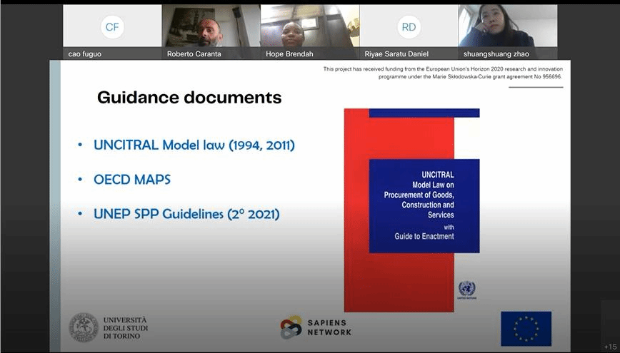 第三阶段由意大利都灵大学RobertoCarnata教授主讲,内容为可持续采购的国际法与国内法框架、合同设计与供应商选择、采购方法、合同授予程序与合同管理等,完整地阐述了可持续采购要求对公共采购全流程的渗入与改造。