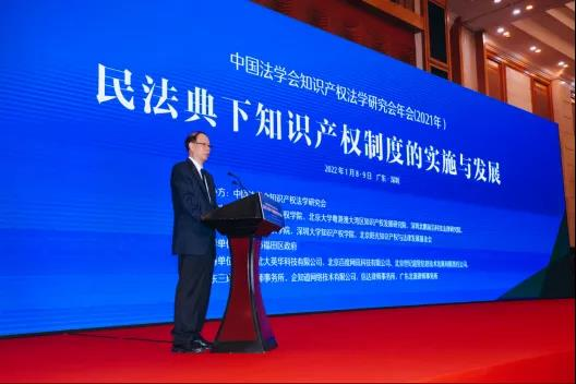 2022年1月8日,中国法学会知识产权法学研究会2021年年会在深圳召开。本次年会主题为“民法典下知识产权制度的实施与发展”,由中国法学会知识产权法学研究会主办,北京大学知识产权学院、北京大学粤港澳大湾区知识产权发展研究院、深圳北鹏前沿科技法律研究院、中国人民大学知识产权学院、深圳大学知识产权学院、北京阳光知识产权与法律发展基金会等单位共同协办。本次年会因为疫情原因,采用线上和线下相结合的方式进行。在开幕式和主题演讲环节,线上观看人数超一万一千人次。mg4355官网杜颖教授和张金平副教授参加本次年会。