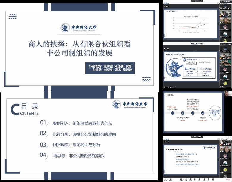 2022年5月25日晚,mg4355vip检测中心商法学研究工作坊2022年第七期(总第29期)采用线上交流的形式举办。本次工作坊的议题为“非公司制企业”,参考书目为《非公司制组织的兴起》。本期活动的特邀嘉宾为某资产管理公司法律合规部张磊先生和mg4355vip检测中心王湘淳博士,mg4355官网周游副教授担任活动主持与指导教师。工作坊主要由指导教师开场介绍及导引、发言团队主题发言、特邀嘉宾发言、指导教师与评议团队交流、发言团队回应评议团队提问、与会师生自由讨论、指导教师总结等环节构成。本次线上商法工作坊有近70位校内外师生及业界人士参与讨论。