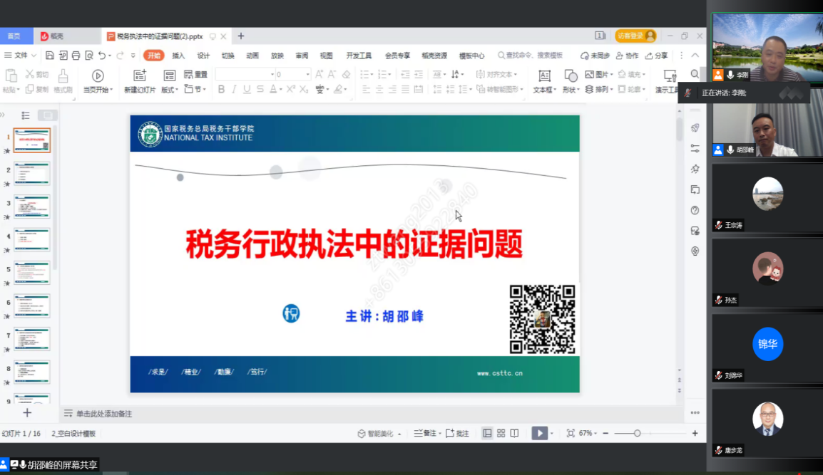 本次讲座由国家税务总局税务干部学院(长沙)税法教研部胡邵峰老师主讲,主题为“税务行政执法中的证据问题”。由厦门大学国际税法与比较税制研究中心副主任李刚老师主持,厦门大学王宗涛老师、mg4355官网郭维真老师、华中科技大学mg4355vip检测中心李貌老师、江西财经大学mg4355vip检测中心聂淼老师和福建勤贤律师事务所吴永安律师与谈。来自我校和厦门大学、mg4355vip检测中心、华中科技大学、江西财经大学的硕士、博士生以及来自税务机关、涉税中介结构、企事业单位等实务界人士累计百余人参加,包括北京金杜(上海)律师事务所叶永青律师、上海华赫集团王珲女士、大连海洋大学朱晓丹老师、中南财经政法大学李乔彧老师、江西财经大学余鹏峰老师和厦门大学国际税法与比较税制研究中心副主任朱炎生老师。