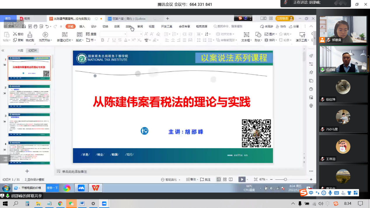 2022年12月9日上午,mg4355vip检测中心财税法工作坊第42期通过直播平台以线上讲座的形式举行。本次讲座的主讲人为国家税务总局税务干部学院(长沙)税法教研部的胡邵峰老师,主题为“从建伟案看税法的理论与实践”。本次工作坊由指导老师郭维真副教授主持,mg4355vip检测中心部分本科生、硕士研究生参加了本次工作坊。
