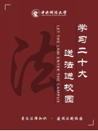 设计理念:海报整体以暗红色为主色调,体现出法律的庄严肃穆。画面左侧一个“法”字突出作品主题,右侧是白色的“学习二十大,送法进校园”十个大字,使主题更加鲜明。下方“普及法律知识,建设法制校园”的字样既与上方校徽相呼应,又丰富了画面内涵。此外,画面以线条作为点缀和装饰,使画面简洁而不失美感。