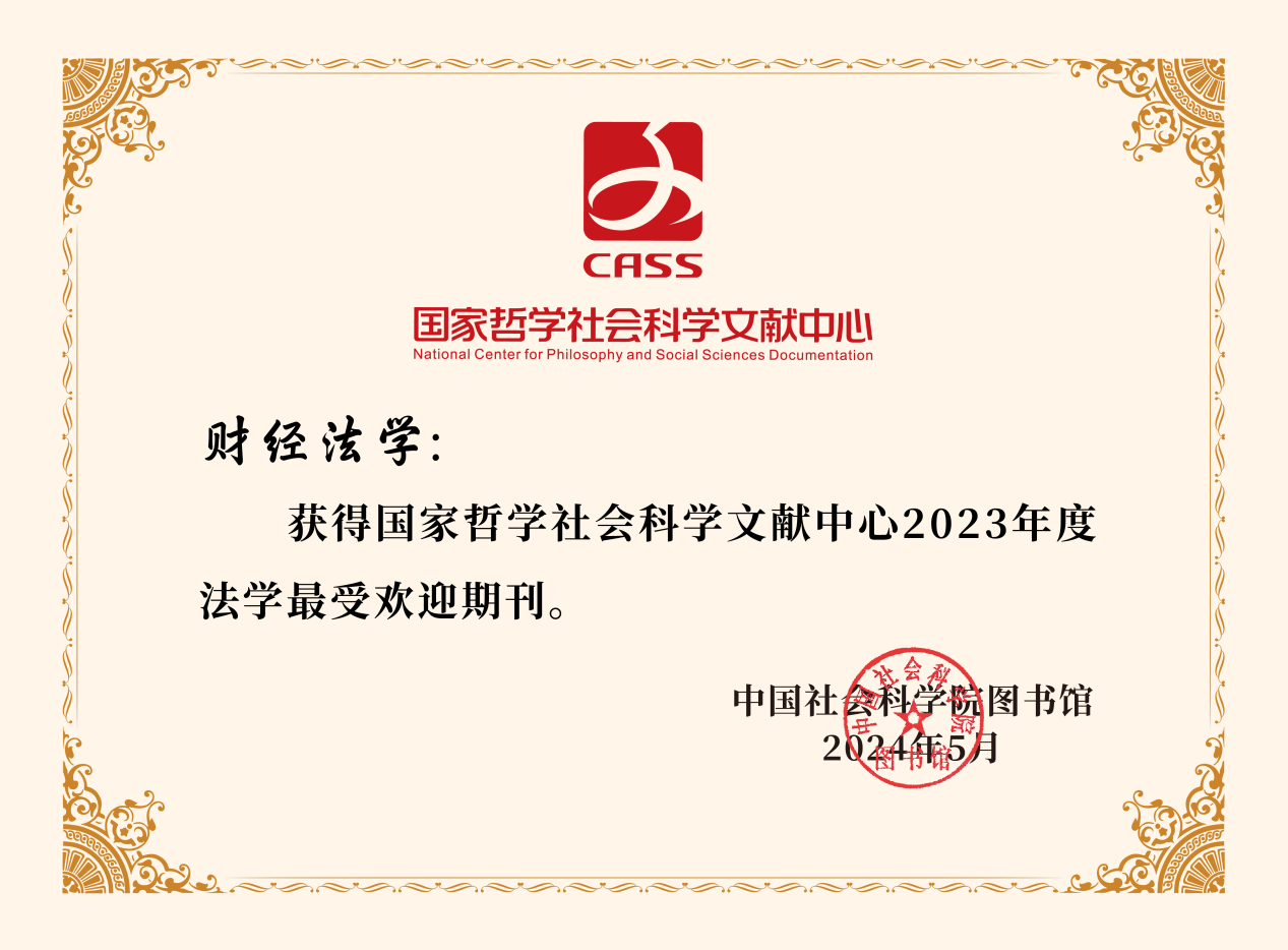 《财经法学》获评“国家哲学社会科学文献中心2023年度法学最受欢迎期刊...